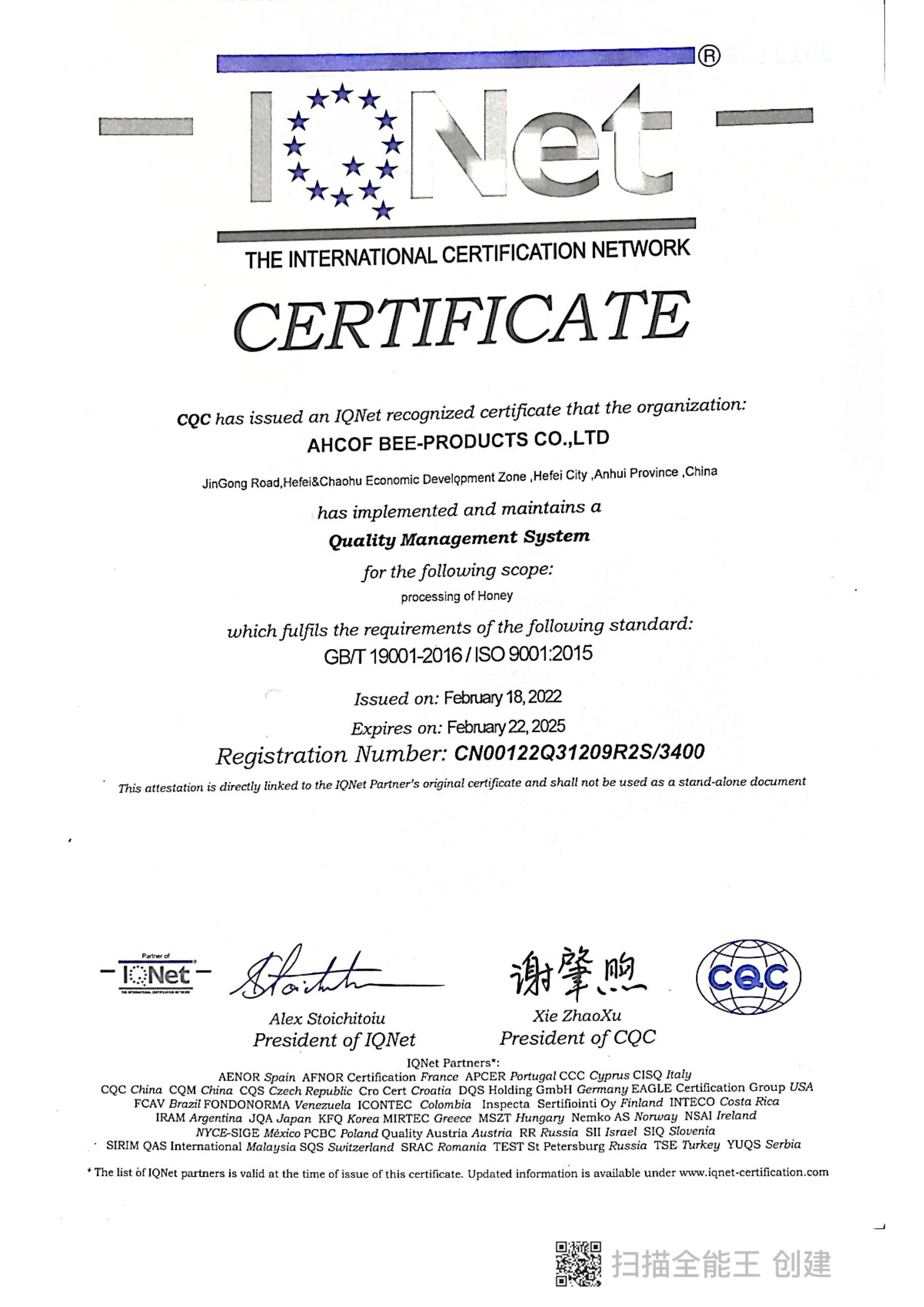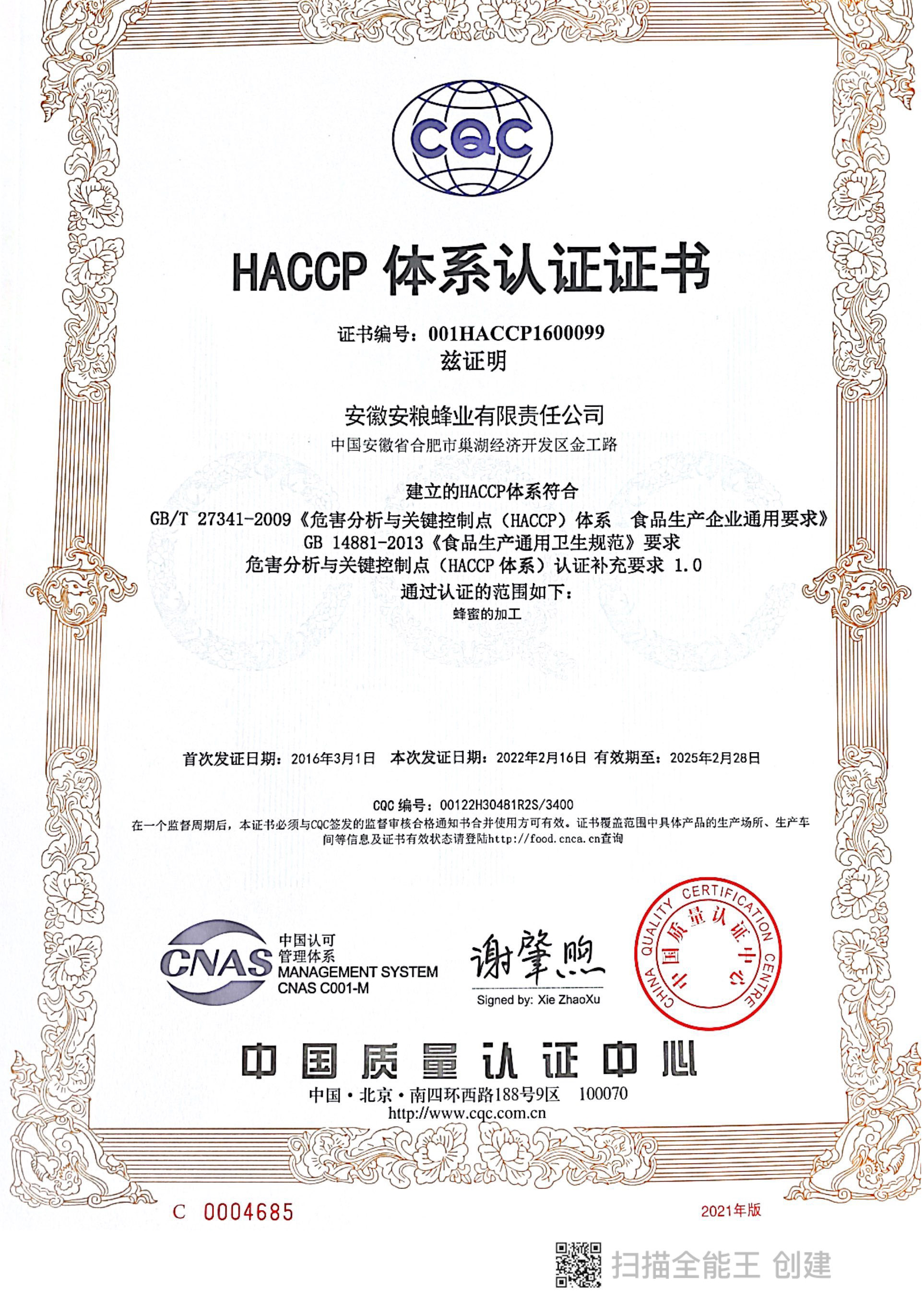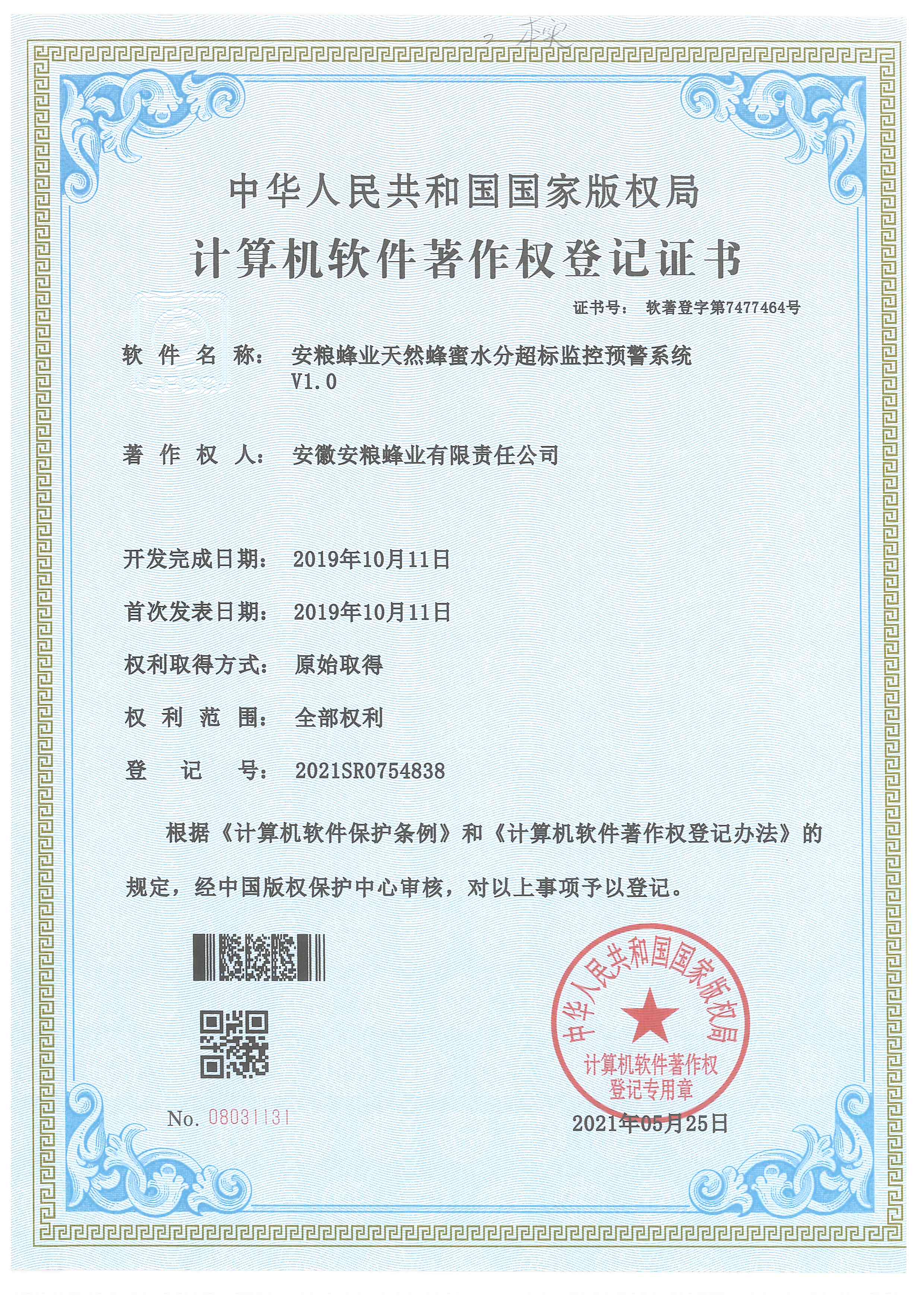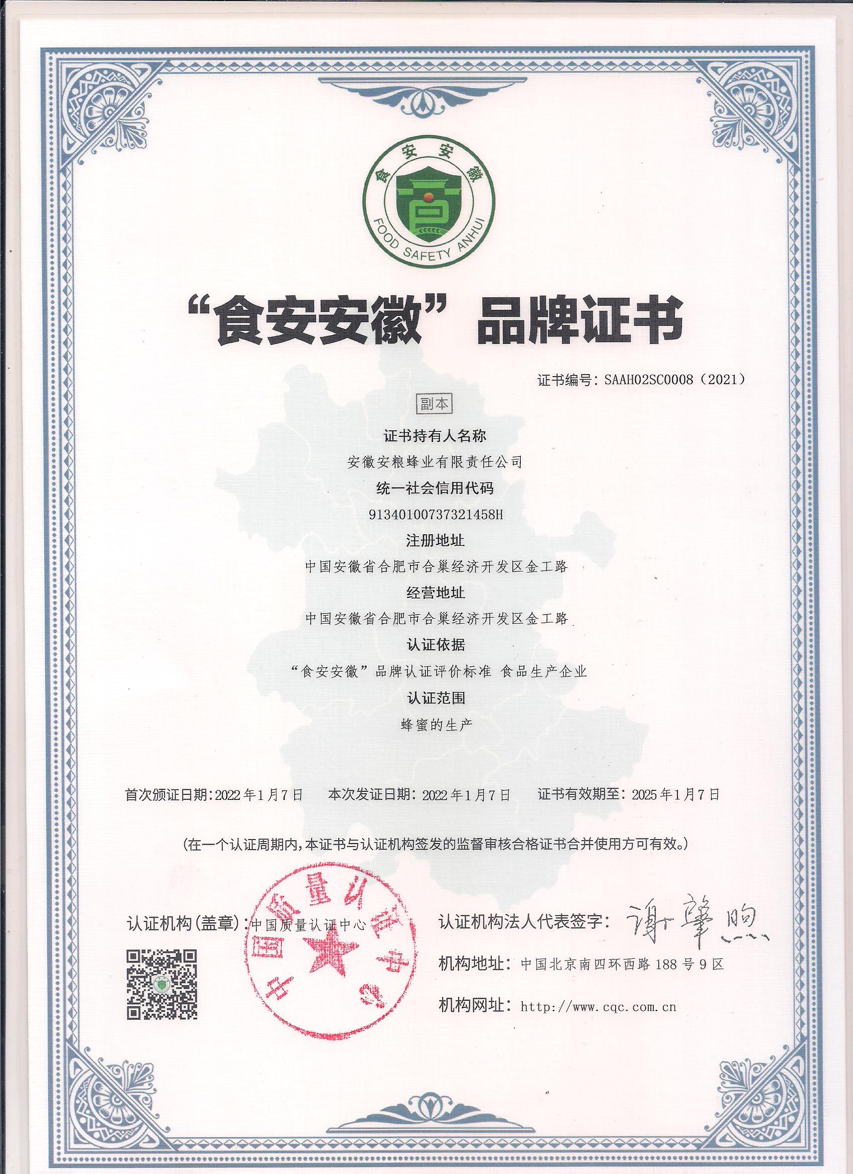 安徽安糧蜂業(yè)有限責(zé)任公司2002年4月注冊(cè)成立,注冊(cè)資本2100萬(wàn)元。企業(yè)位于安徽巢湖經(jīng)濟(jì)開(kāi)發(fā)區(qū)金工路,占地面積38畝,建筑面積17000平方米,專業(yè)從事蜂產(chǎn)品的研發(fā)生產(chǎn)和銷售。公司生產(chǎn)的洋槐蜂蜜、荊條蜂蜜、山花蜂蜜等具有廣闊的市場(chǎng)前景,深受國(guó)外客戶的青睞,是國(guó)內(nèi)大中型蜂蜜加工企業(yè),是中國(guó)蜂產(chǎn)品協(xié)會(huì)會(huì)員單位和安徽省蜜蜂產(chǎn)業(yè)商會(huì)副會(huì)長(zhǎng)單位。公司出口蜂產(chǎn)品基地備案蜂群高達(dá)51318群。公司產(chǎn)品已通過(guò)了ISO9001-2015質(zhì)量管理體系和HACCP食品安全控制體系,并獲得出口食品生產(chǎn)企業(yè)衛(wèi)生注冊(cè)和SC認(rèn)證。產(chǎn)品主要出口歐盟、日本、澳大利亞等二十多個(gè)國(guó)家和地區(qū)。