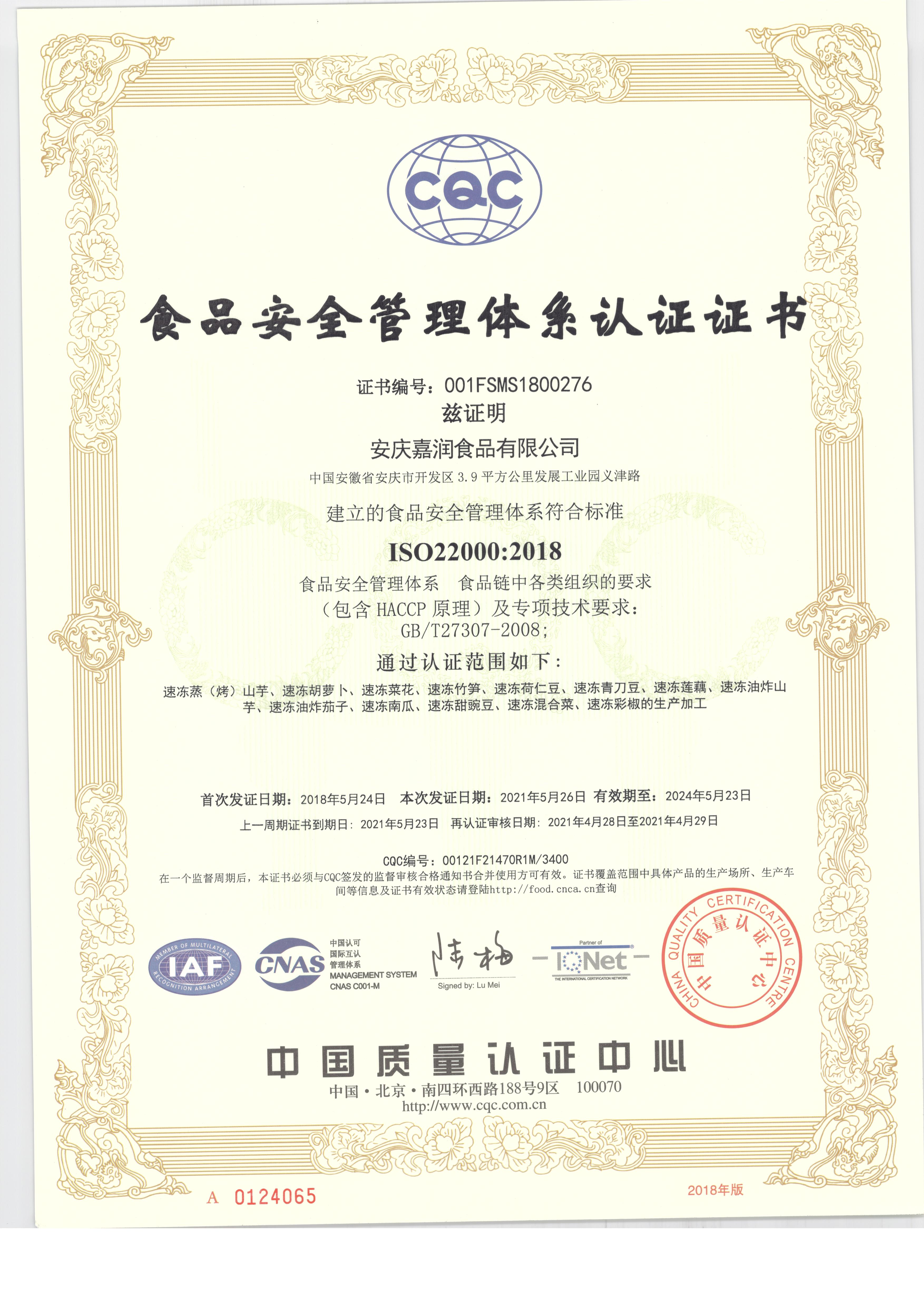 安慶嘉潤食品有限公司為安徽安糧實業(yè)發(fā)展有限公司直屬控股子公司,公司位于安慶經(jīng)濟(jì)技術(shù)開發(fā)區(qū)3.9平方公里發(fā)展工業(yè)園,交通便利,毗鄰國家高速公路網(wǎng),公司距離高鐵線路網(wǎng)站3.8公里,距離安慶天柱山機(jī)場1.5公里,航班可往返國內(nèi)大中型城市。工廠占地面積1.22萬平方米,建筑面積7000平方米,公司擁有先進(jìn)的各種速凍蔬菜生產(chǎn)流水線設(shè)備、油炸蔬菜生產(chǎn)和蔬菜食品烤制設(shè)備,低溫冷庫1200噸,年生產(chǎn)加工能力6000噸。公司擁有自主的產(chǎn)品理化、微生物指標(biāo)和農(nóng)殘檢測實驗室,對原料和成品的農(nóng)藥殘留、理化及微生物等技術(shù)指標(biāo)進(jìn)行全過程檢測控制。