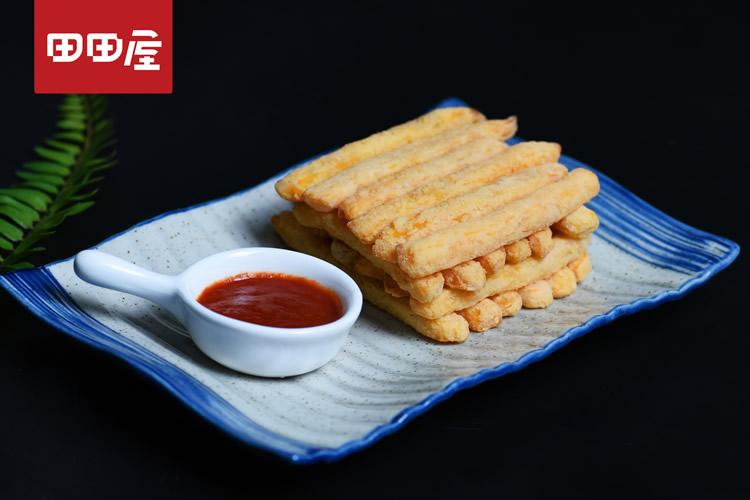 黃金薯條采用秋收后的良品紅薯,經(jīng)過一個夏天的積累,尤其甘甜、香糯。經(jīng)過幾次的清洗、挑揀,經(jīng)機器巧挑保證粗細長短適中,再均勻裹粉,油炸至金黃,入口外焦里嫩,甜糯爽口,再配以醬汁,是休閑小食的不二之選。