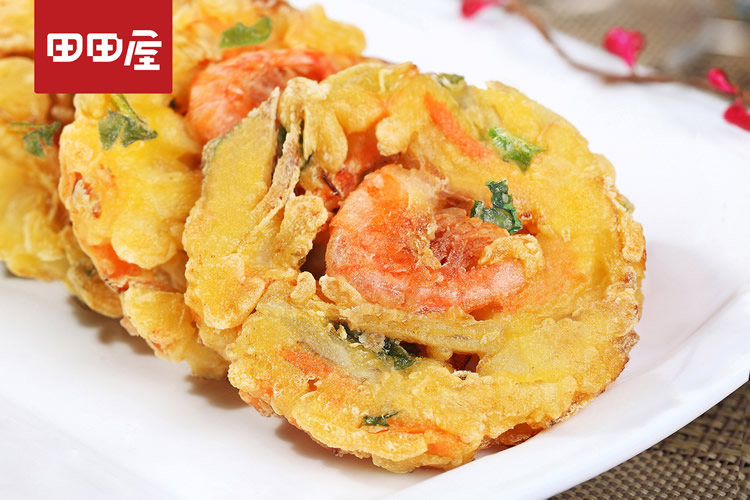 受到日本天婦羅的啟發(fā),田田屋將白對蝦、牛蒡、胡蘿卜、茼蒿、洋蔥等各色蔬菜巧妙配比,經(jīng)過調味、掛糊、油炸,烹制出風味獨特的米蘭蝦餅,不僅口感酥脆,香味濃郁,更有整顆大蝦鑲嵌其中,令人大感Q彈過癮,新鮮爽口,好吃不膩。