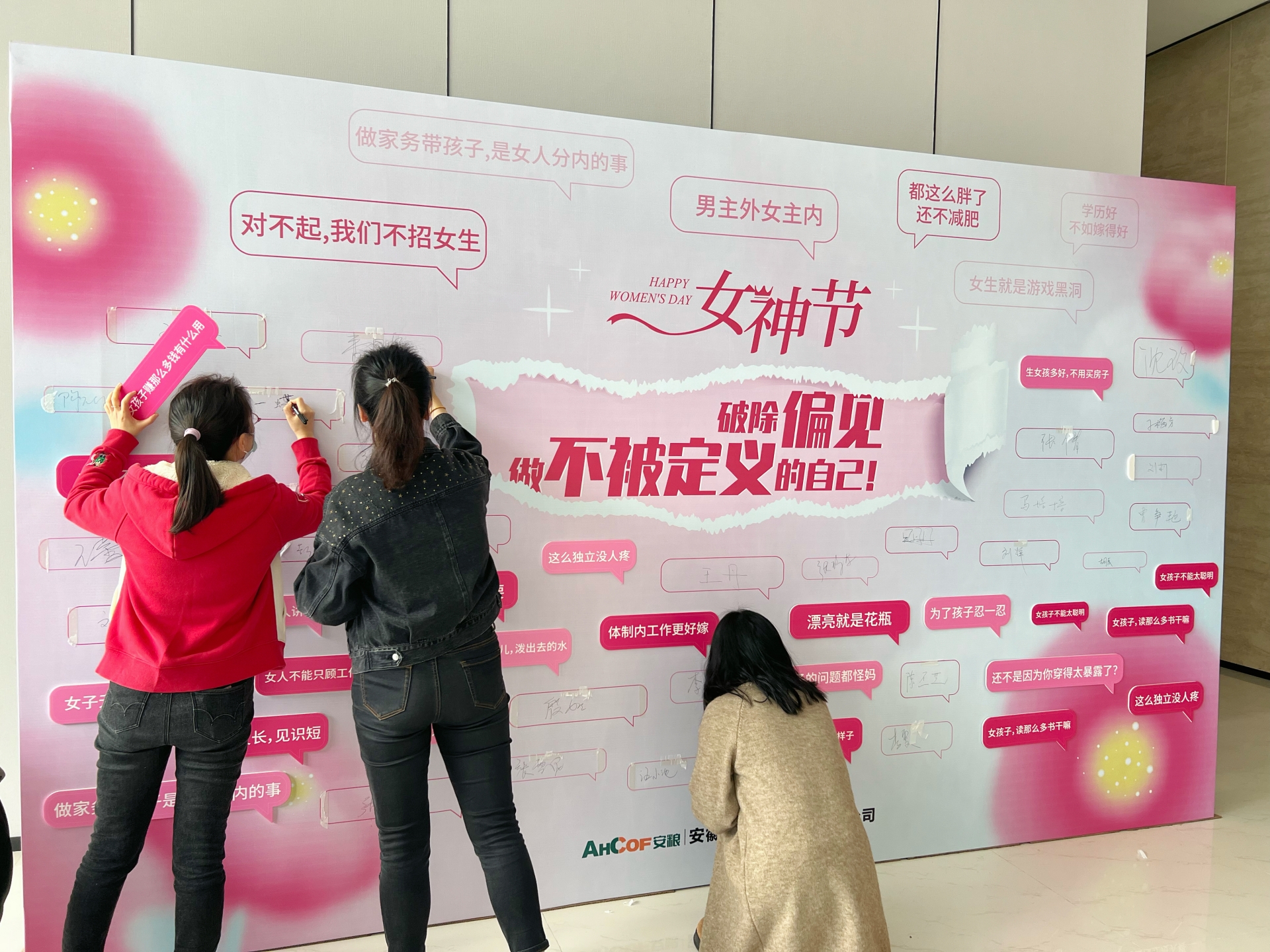 活動開始前,女職工們陸續(xù)來到簽到墻前,撕下外界對女性貼的標(biāo)簽,打破對女性的刻板印象。越來越多的女性早已不焦慮于年齡,不畏懼挑戰(zhàn),更不受制于女兒、妻子或者母親的身份,她們選擇聆聽內(nèi)心的聲音,做不被定義的自己。