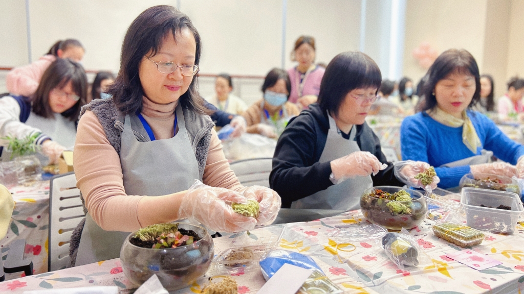 為進(jìn)一步激發(fā)女職工工作熱情,充分發(fā)揮巾幗“她”力量,3月8日上午,安糧實(shí)業(yè)分工會組織開展了“植此青綠”主題微景觀DIY活動。