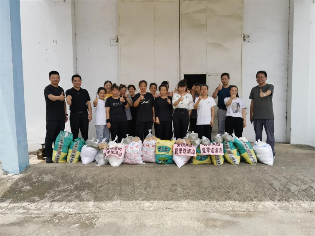 入夏以來,安徽多地開啟高溫模式,安糧實(shí)業(yè)于7-8月開展了“夏日送清涼”活動,慰問下屬工廠奮斗在一線的員工們,將防暑降溫物資送到基層員工手中,為高溫酷暑下堅(jiān)守生產(chǎn)一線的員工撐起“遮陽傘”。