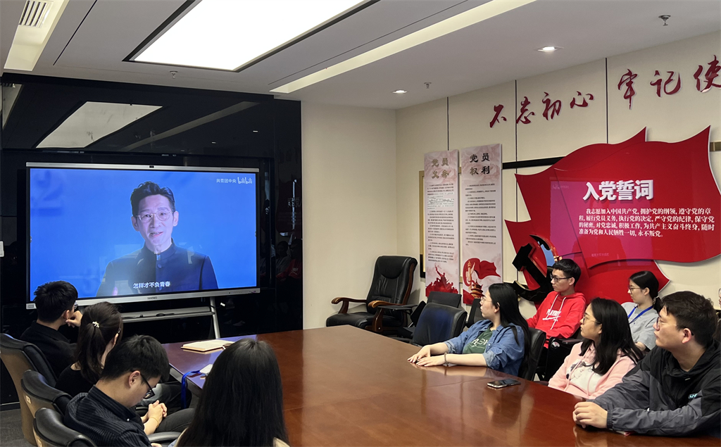 團(tuán)員們首先集體觀看了五四青年節(jié)創(chuàng)意短片《不被大風(fēng)吹倒》以及建團(tuán)百年短片《奮斗者正青春》。