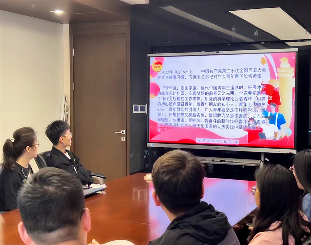 觀看短片后,團(tuán)員們感觸頗深,紛紛圍繞自身工作,進(jìn)行了交流互動,發(fā)表了感想。隨后,青年團(tuán)員們開展了“火紅青春,堅定信念”主題團(tuán)課活動,由安糧實業(yè)團(tuán)支部書記帶領(lǐng)大家集體學(xué)習(xí)黨的二十大報告中習(xí)近平總書記對中國青年的寄語。“青年強(qiáng),則國家強(qiáng)” ,當(dāng)代中國青年生逢其時,我們要立志做有理想、敢擔(dān)當(dāng)、能吃苦、肯奮斗的新時代好青年。